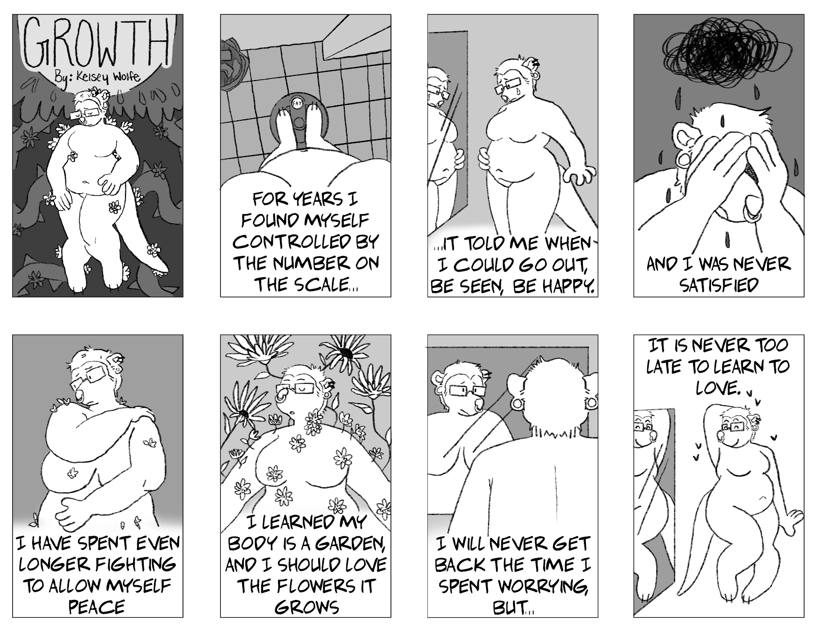 “Growth” is a memoir zine that discusses body issues and learning to love yourself.